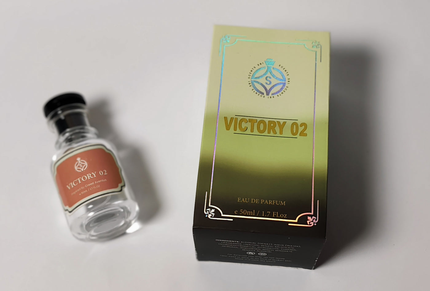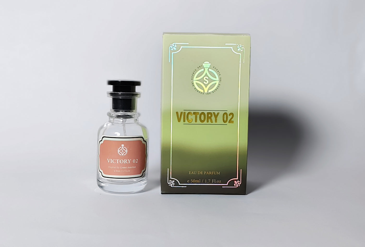Victory 02 scent is bold, assured, and robust, skillfully designed to forge a genuine, modern and to be a classic fragrance. Selectively chosen bergamot, rose and apple blends with rare aromas of pineapple and jasmine, subtly infused with patchouli. The harmony of the fruity base notes, including labdanum, ambergris, and oakmoss, introduces a hint of deep intricacy to this enduring perfume.